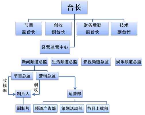 在实际调研中,我们经常会听台内员工说“拉广告”很难,这是一种必然现象。没有高品质的、贴近百姓的节目,自然不会有收视,广电对观众的关注度打包进行的“二次售卖”自然不会有客户会买单。因为节目才是电视台唯一的产品,单纯“拉广告”是本末倒置的一种思维。具体的节目系统,涉及两大方面:一是节目生产;二是节目编排。
