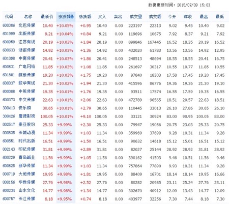 预计,2015年下半年,随着自媒体平台、移动互联网、以及其它行业如电影、游戏、广告、体育文化的快速发展,将会有更多的资本投入到传媒行业中。
