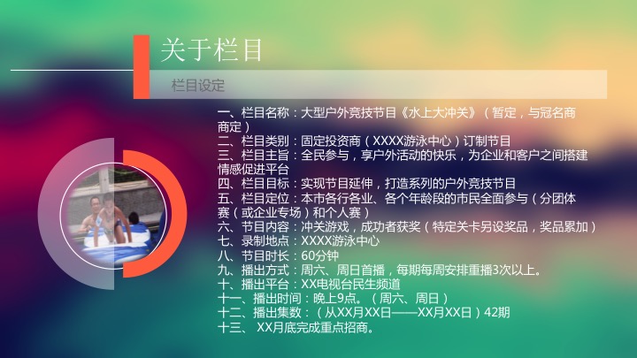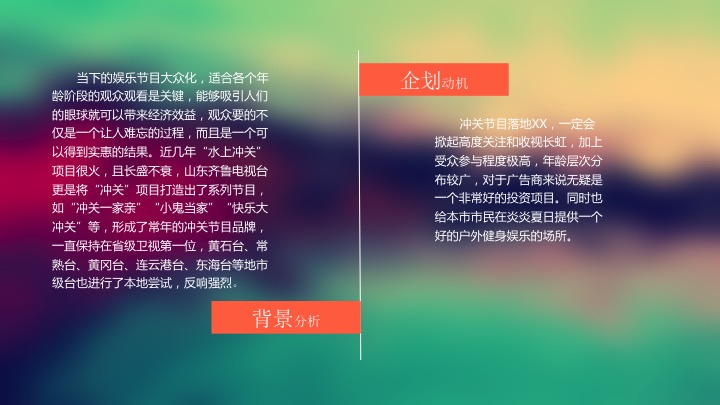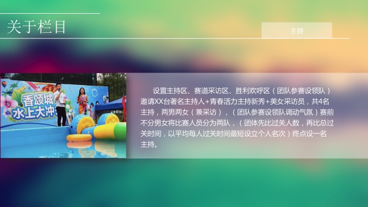 当下的娱乐节目大众化,适合各个年龄阶段的观众观看是关键,能够吸引人们的眼球就可以带来经济效益,观众要的不仅是一个让人难忘的过程,而且是一个可以得到实惠的结果。近几年“水上冲关”项目很火,且长盛不衰,山东齐鲁电视台更是将“冲关”项目打造出了系列节目,如“冲关一家亲”“小鬼当家”“快乐大冲关”等,形成了常年的冲关节目品牌,一直保持在省级卫视第一位,黄石台、常熟台、黄冈台、连云港台、东海台等地市级台也进行了本地尝试,反响强烈。
