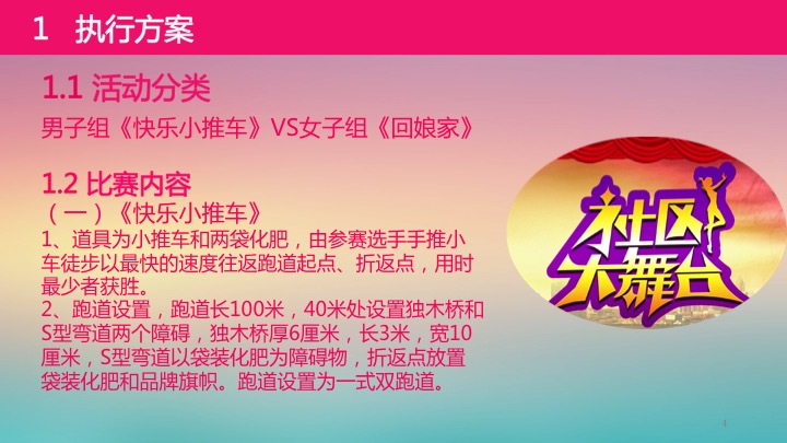 我们社区结合开展党的群众路线教育实践活动,以传承和弘扬中华文化,丰富市民群众文化生活为目的举办了社区大舞台活动。广电实战专家团研发了全国最大的市县台大型活动案例库,详情咨询:18600115136 张老师