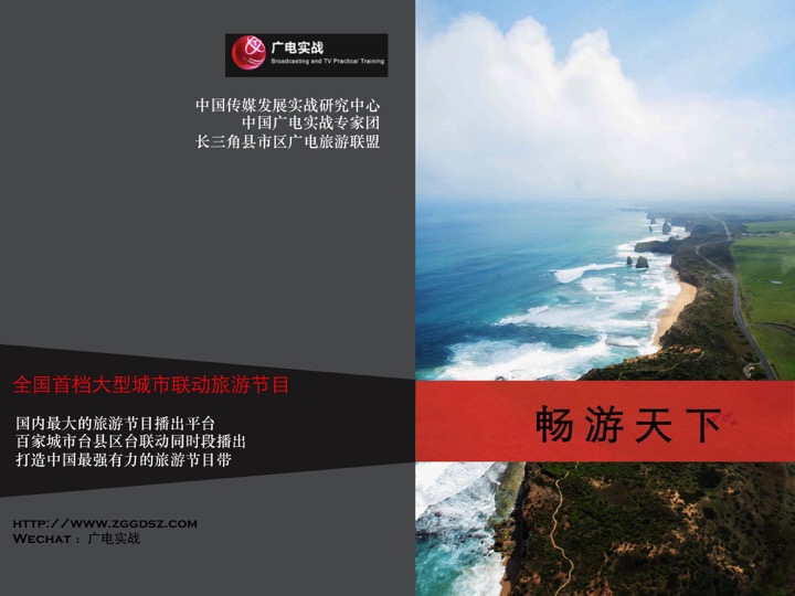 中国广播电视实战专家团与长三角市县区旅游广电旅游联盟强强联合,共同打造全国最强有力的日播旅游节目《畅游天下》,该节目由全国逾百家电视台联合制作,全国同步播出。